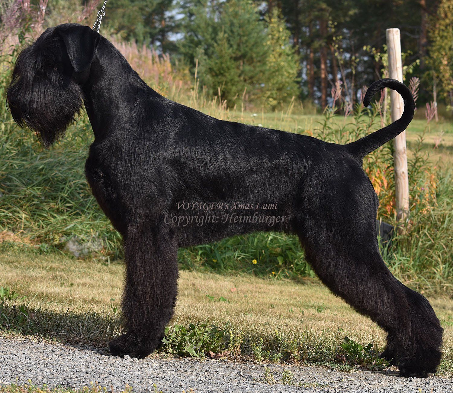 ALLGEMEINES ERSCHEINUNGSBILD : Gross, kräftig, eher gedrungen als schlank, rauhhaarig; das vergrösserte, kraftvolle Abbild des Schnauzers. Ein trutzig-wehrhafter Hund von Respekt einflössendem Aussehen.